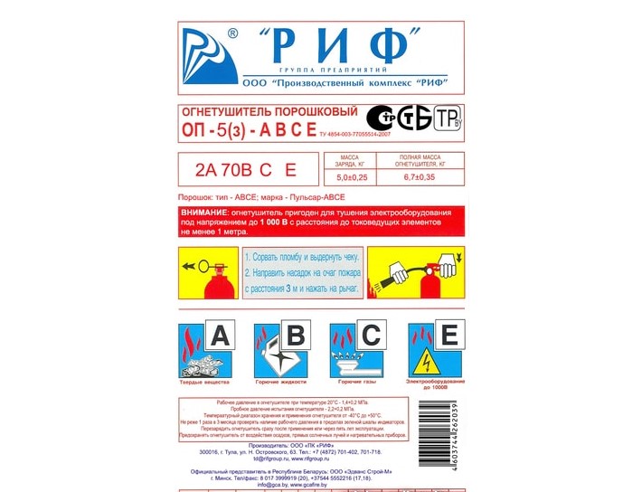 Предназначены для тушения пожаров класса A, B, C, E.